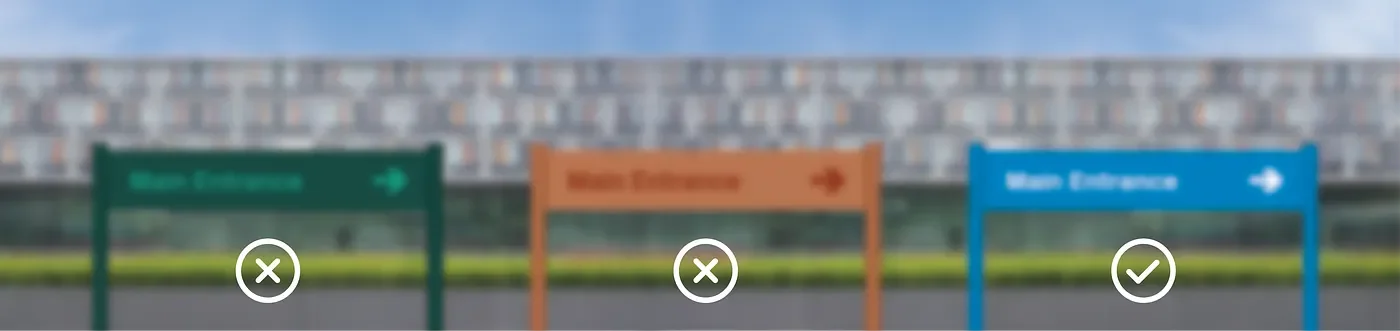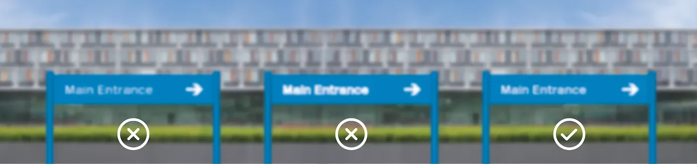 In the example image above, the left and middle signs blend into their surroundings. The high-contrast sign on the right stands out clearly, just as it should.